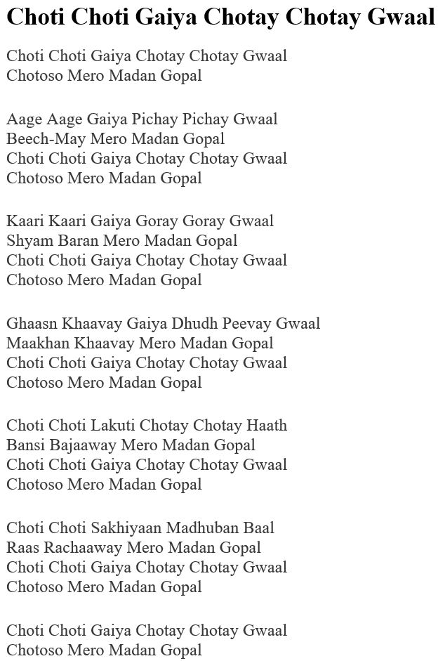 Choti Choti Gaiya Chotay Chotay Gwaal
