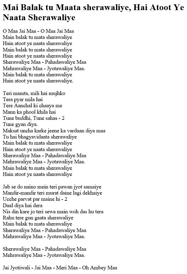 Mai Balak tu Maata sherawaliye…
