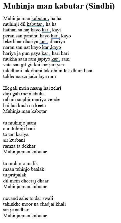 Muhinja man kabutar (Sindhi)