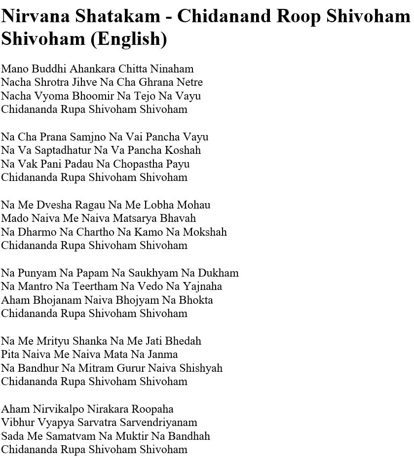 Nirvana Shatakam – Chidanand Roop Shivoham Shivoham (English)