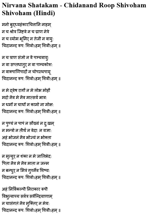 Nirvana Shatakam – Chidanand Roop Shivoham Shivoham (Hindi)