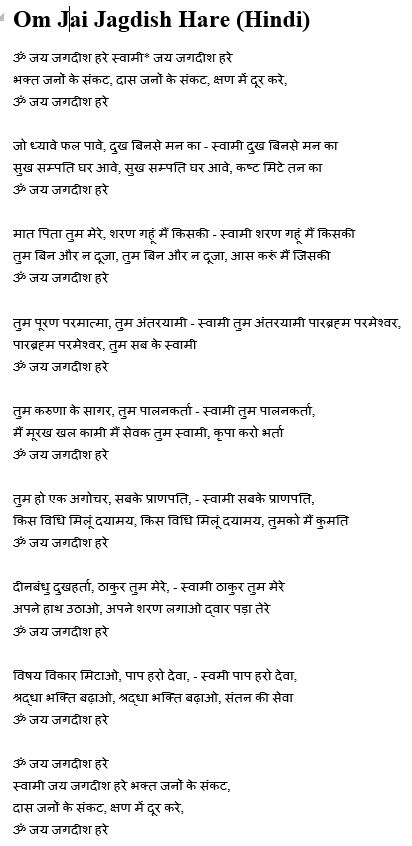 Om Jai Jagdish Hare (Hindi)