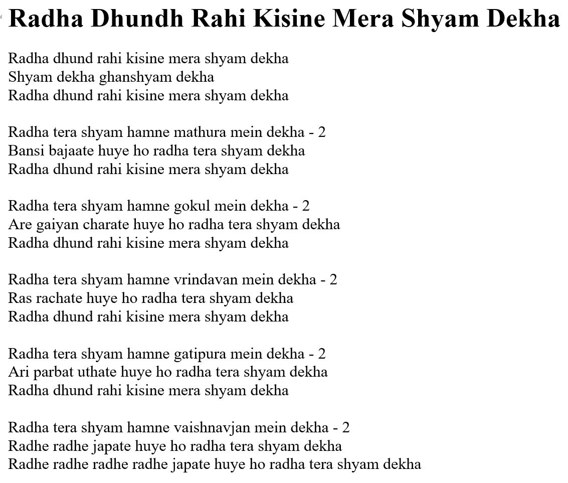 Radha Dhundh Rahi Kisine Mera Shyam…